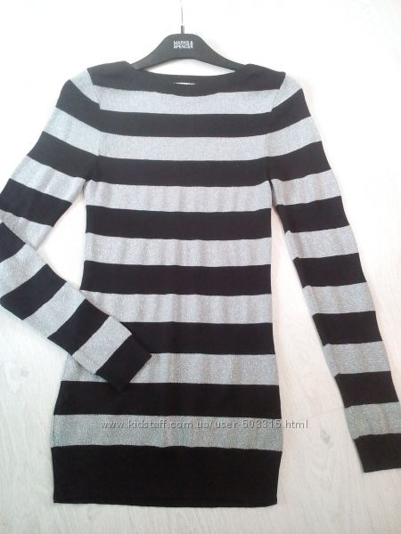 9-10. Тоненький удлиненный свитерок, размер S (36) на худеньку высокую девушку, в идеальном состоянии, цвет черный и серебристый, на теле не колется 50 грн.