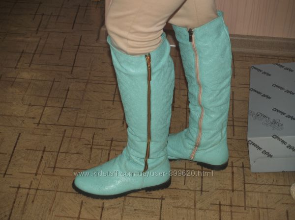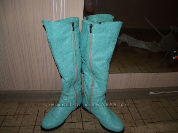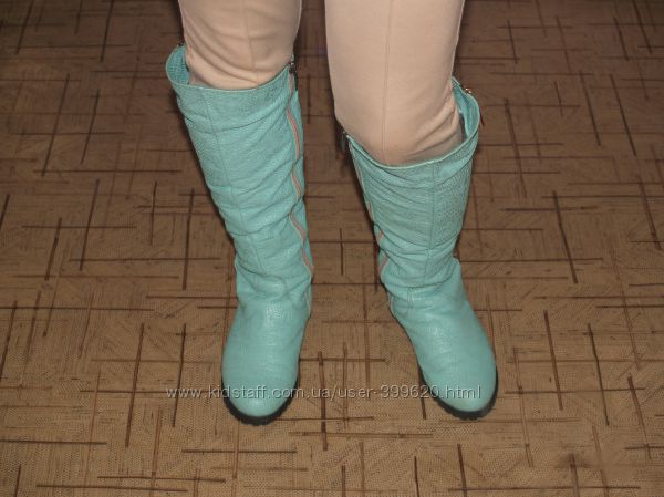 Подробное описание: Сапоги зимние, кожа. Цвет мяты. Идеальное состояние.