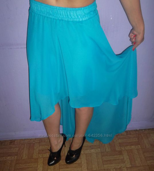 Шикарная легкая юбка со шлейфом размер С,МПояс на резинке