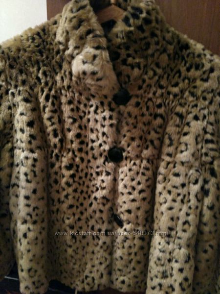 Шубка тепла, мітація леопарда, штучне хутро але на дотик м´який, під натуральний.Одягнена мало, стан ідеальне, стиралася 1 раз. Хутро не деформувався, що не збився, що говорить про якість. Купувалася в США, виробник КитайРозмір вказано S але за параметрами можна увійти М (10). Рукав 3/4, в´язала до нього чорні рукави, можу віддати за бажанням