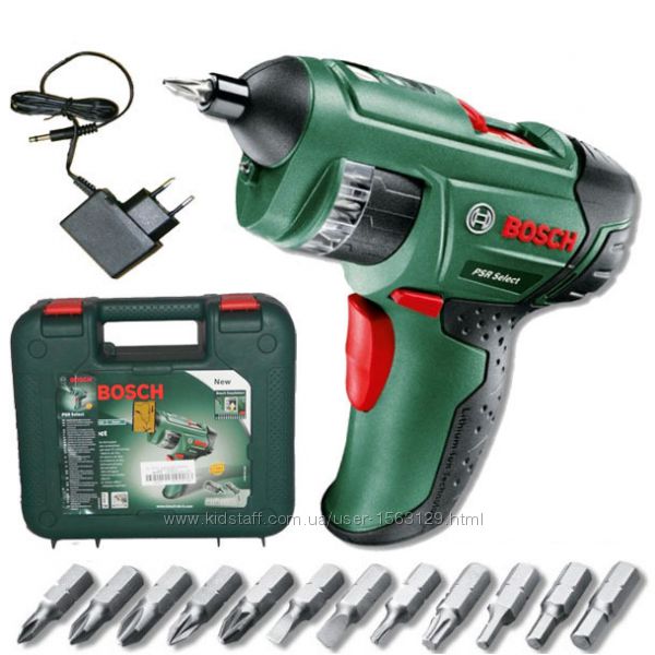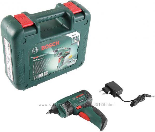 Комплектація: Акумуляторный шуруповерт Bosch PSR Selec, зарядний пристрій,12 стандартних біт, кейс