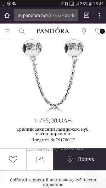 Продам новий оригінальний захистний ланцюжок на браслет Pandora. Мішечок в комплекті. Ланцюжок з біркою-можна на подарунок. (куплений в офіційному магазині в Україні.) Продам дешевше аніж купила.[ссылка удалена]