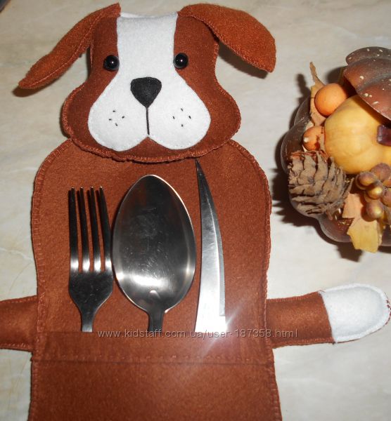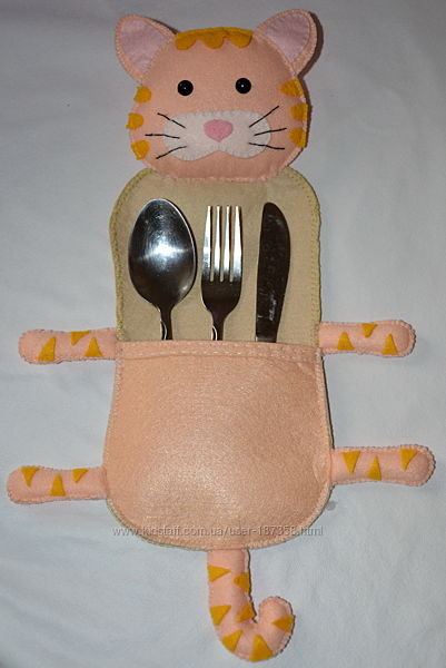 Учите малыша хорошим манерам за столом? Дополните сервировку стола симпатичным чехлом для столовых приборов. Выполнен из жёсткого корейского фетра. Голова, лапы и хвост мягкие, внутри холофайбер. Общая длина 38 - 39 см, ширина с лапами 24 - 26 см, длина кармана 12 - 13 см, ширина 12.5 см. На заказ могу сшить чехол в виде другого животного.Киев. В другой город перешлю Новой Почтой, Justin, Интайм, Укрпочта .