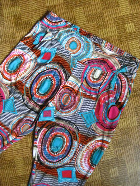 стильные яркие и удобные штаны свободного кроя фирмы "Ze-ze" - размер L - 44-46рр. - б/у - в идеальном состояниицвет: разноцветный принт