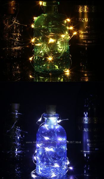 Подробное описание: Гирлянда - пробка. Проволочная LED светодиодная на батарейках.