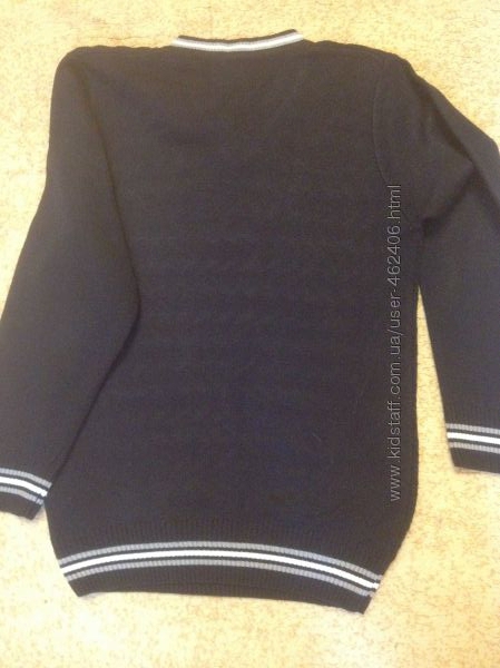 Свитер Beyond (Турция), размер указан 5-6 лет, но большемерит, реально идет на 128-134 см. Б/у, но состояние идеальное. Цвет - темно-синий. Почти не носили. Идеально для школы, на рубашку. Состав 30 % шерсть, 70 % акрил. С V-образным вырезом.Спереди - фактурный узор, сзади и рукава - гладкие.