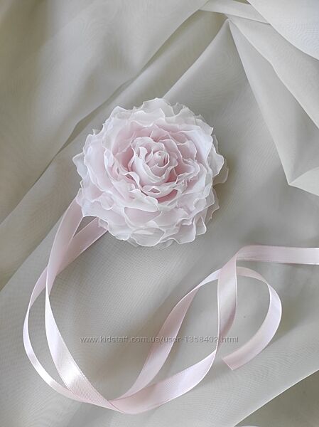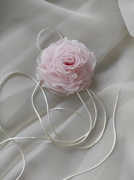 Надзвичайно ніжний, стильний та гарний аксесуар. Троянда зефірна виготовлена із шифону, розмір 7 см. Кріплення стрічка довжина 130 см ( можна іншу за бажанням). Всі пелюстки виготовлені вручну. Можливо виготовлення в іншому кольорі:).Дивіться інші мої об´яви, багато гарних речей 🌹
