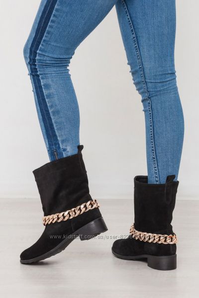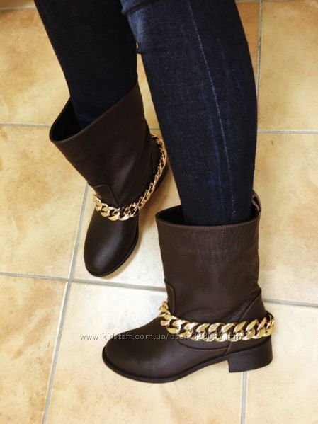 Подробное описание: Широкие полусапожки со съемной цепью. Зима и Деми. 4 цвета