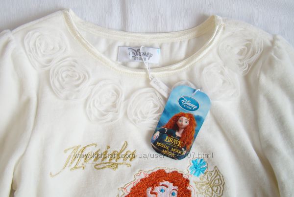 Блузка детская хлопковая белая с вышивкой Disney Store (Размер 140 (9-10 лет))С вышивкой. Ткань велюровая, стрейчевая. Цвет молочный. Состав: 75% хлопок, 25% полиэстер.
