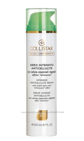Сыворотка Collistar Intensive Anticellulite Serum имеет в своем составе экстракт растительных стволовых клеток Эхинацеи, обновленный липолитический комплекс и Phytosonic® комплекс.