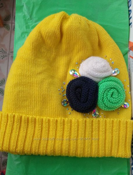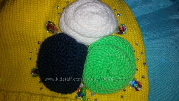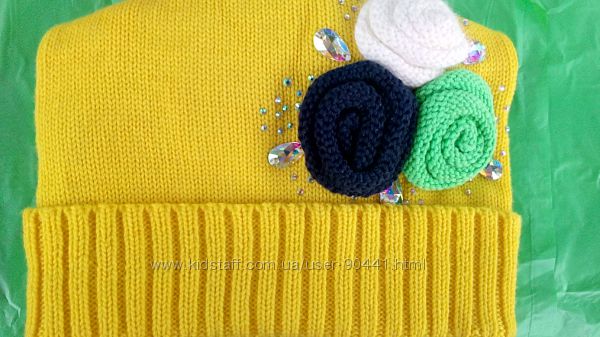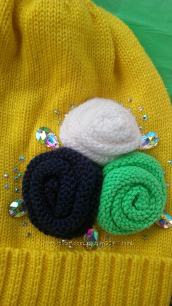 Изготовлена под заказ, сама шапочка машинная вязка, пряжа 100% меринос производства Италия, декор ручная работа, пришивные стразы Сваровски (Италия)!