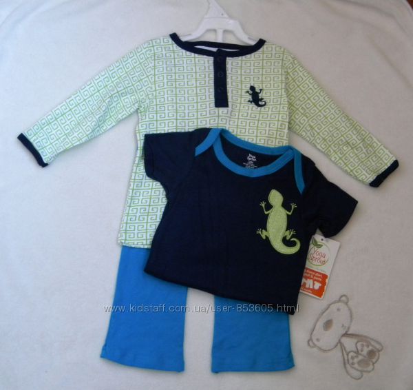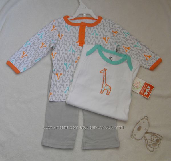 Комплект из 3-х предметов от американского бренда Yoga Sprout. В размерах на 12, 18, 24 мес.В комплекте боди с коротким рукавом, кофточка и штанишки. Из тоненького, приятного на ощупь трикотажа.