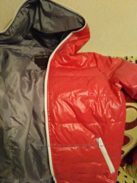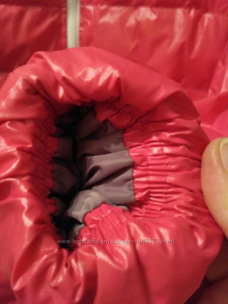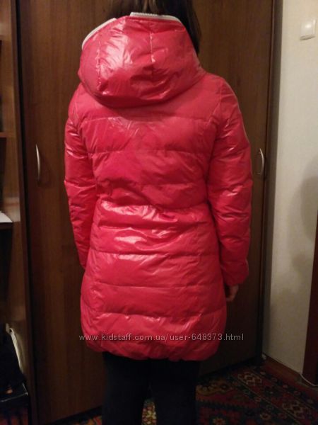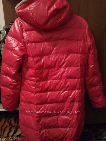 Водовідштовхувальній пуховик, тканина з просоченням, що не вбірає воду Взагалі и так же легкий в пранні. Чи не продувається и теплий. Колір Яскравий рожевий (на фото 3 точніше видно колір)Стан нового, одягненій 1 зиму.На 11-14 років
