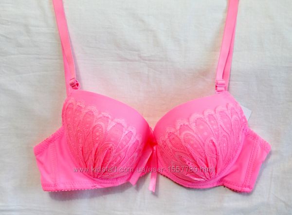 Бюстгальтер розовый 65В 70В кружево поролон полу пуш-ап фирма HUN