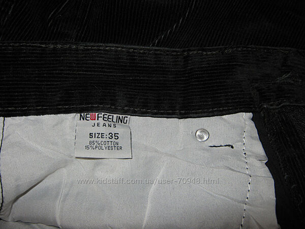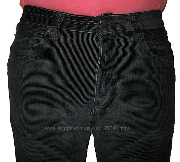 Черный цвет немного с отливом. Без выварок и потертостей. Микровельвет. Классическая модель. Классический покрой "5 карманов". Прямой покрой брючин. Обшиты нитками родного цвета. Удобная посадка в талии. Застегиваются на молнию. Широкие штрифки для пояса. Создают привлекательную фигуру. Спереди: полукруглые глубокие карманы. В углах карманов фурнитура. Карманы продублированы строчками. Карман для монет стандартной формы.Сзади: большие накладные карманы классической формы. На карманах строчки.