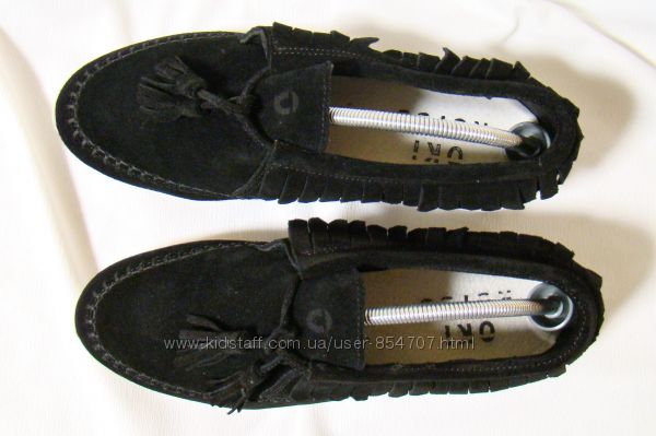 Мокасины женские Oki KutsuНатуральная замша. Подкладка из текстиля. По наружи отделка бахромой. Шнурком можно регулировать подъём.