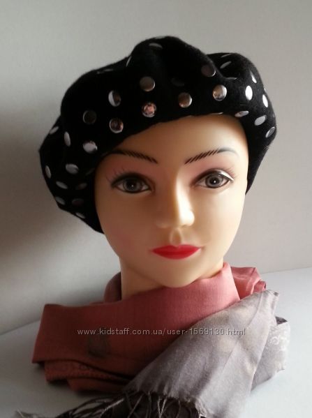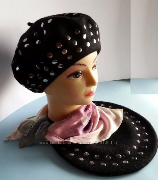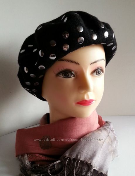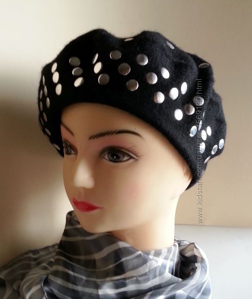 Подробное описание: Берет женский. Фетровый. С заклепками. Размер 54 - 56.