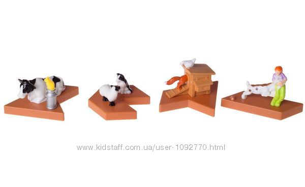 Состав игры: основание двора фермы, 11 элементов головоломки, буклет заданий с инструкцией и ответами.