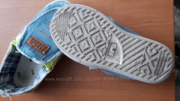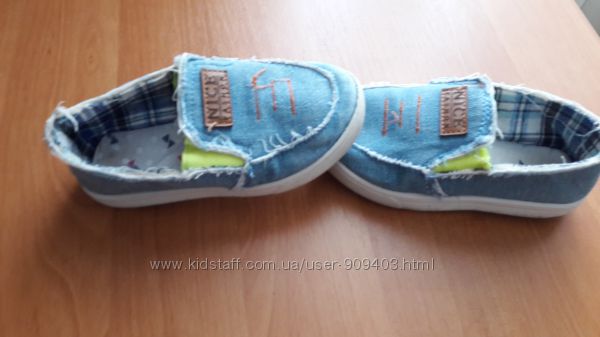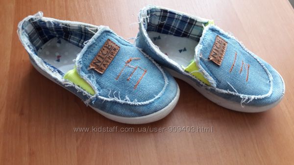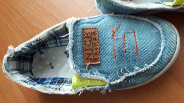 Легкие тапульки для сада и прогулок из джинсовой рваной ткани. Размер 29, но считаю, что они маломерят на размер, длина стельки 16смДжиновые тапки - стелька 19см.