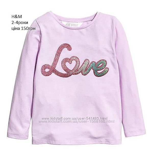Подробное описание: Фирменные лонгсливы, регланы для девочек Крейзі8, h&m 1. 5лет ,3т,4т