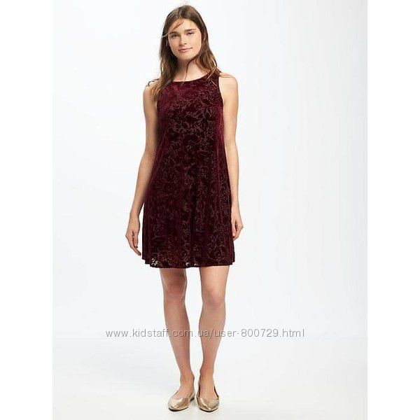 Удобные платья из немнущейся ткани от известного американского бренда OLD NAVYФото 1-2 Нарядное велюровое платье-свинг на подкладке. Сзади застегивается на пуговку.