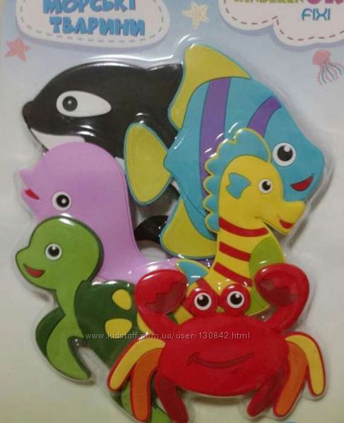 Фото №5 абор аква-пазлов для игры в ванной. Набор состоит из 8 шт аква-животних с геометрическими элементами.