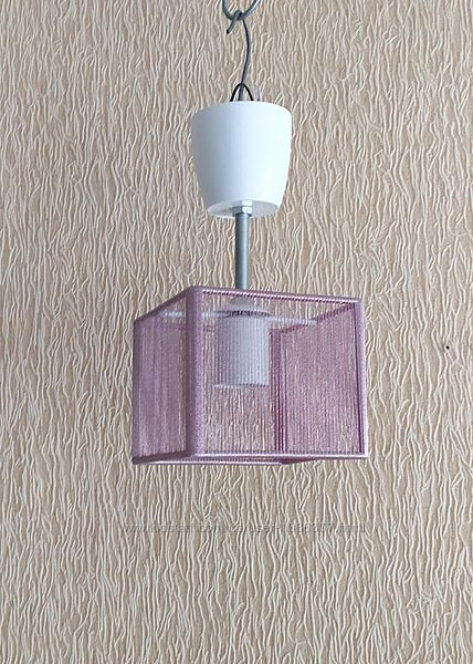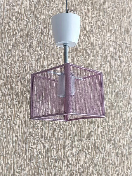 Небольшая люстра светильник подвес на 1 лампу Материал абажура - металл+текстильная нить Цвет - розовый Размеры - 24х12х12 см Тип патрона - E27 --- Пересылаю компаниями Новая почта, Укрпочта, Мист