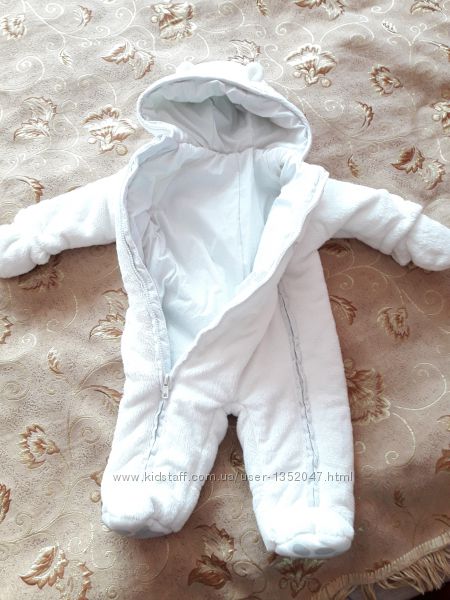 Продам очень классный комбезик ,возраст указан 3-6 мес.,но ориентируйтесь по замерам. Длинна от горловины до подгузника - 37см.,длинна рукавчика 29см.+ рукавичка,длинна по спинке до пятки- 59см.Все мерки сняты по верху изделия.Можно носить и мальчику и девочке. Наполнитель синтепон. Сезонность - холодная осень,весна, еврозима.