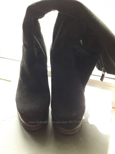 Шикарные сапожки евро зима. Натуральный замш,цегейка. Очень теплые и удобные. Размер 35 по стельке 23 см на худенькую ножку внутри мех толщиной 1.5- 2 см.Верх тянется есть резинки. Каблук 12см,платформа 2 -2.5см,ширина вверху -17см, высота от пятки-39см. Мне до самого колена. Покупала в Miraton. Возможна примерка в КиевеДругие объявления продавца