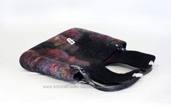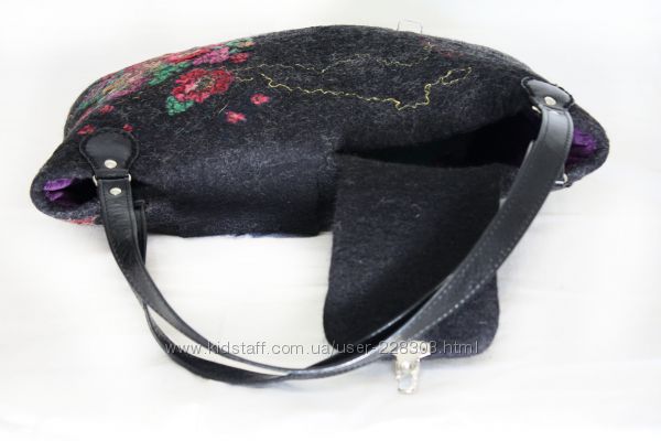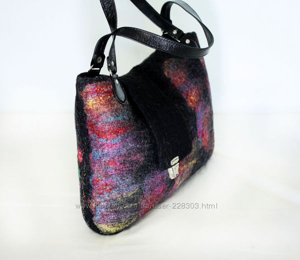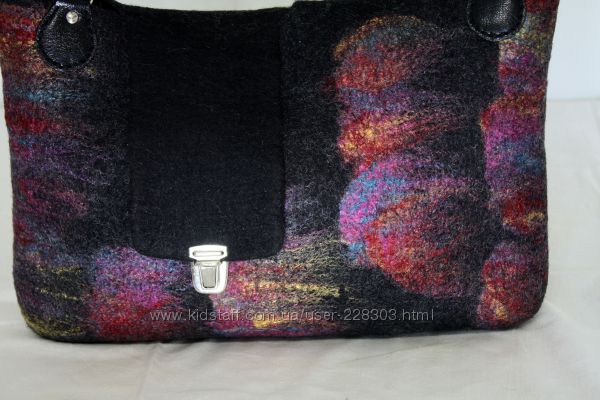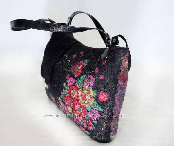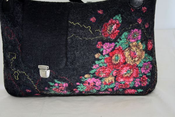 Двухсторонняя сумка "Гуцулочка" сваляна из мериносовой шерсти с элементами нунофелтинга и миксом волокон вискозы.