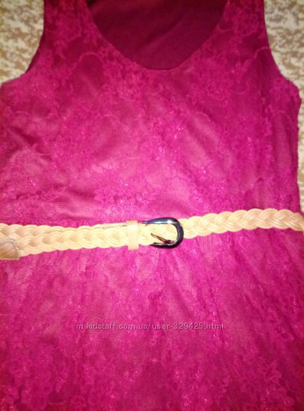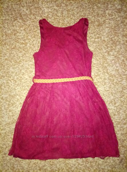 Продам бордовое нарядное платьице- сарафан. Размер 10 лет. Верх - кружево, подкладка полиэстер. Платьице продаю с ремнем, покупали отдельно. Состояние нового! Длина - 78см ПО груди - 36см Пояс - 34см (вшита резиночка) Длина от плеча до пояса - 35см Возврата нет.