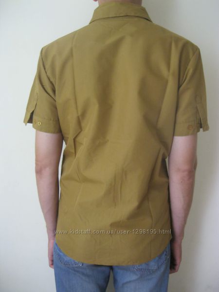 Продам рубашку мужскую с коротким рукавом, новая. В упаковке. Цвет – хаки. Прямого покроя. Азиатский размер XXL( на 1-2 размера меньше, чем США, Великобритания, AU, EU). На Наш размер - примерно 48-50. Рубашка застегивается на семь пуговиц. На каждом рукаве сзади по две пуговички, с их помощью можно отрегулировать ширину рукава. Длина рубашки – 71см, длина рукава - 23см, длина плеча – 15см, ширина рубашки – 100см.Характеристики товара: