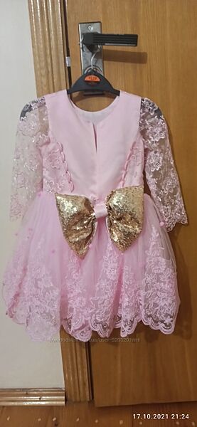 Подробное описание: Нарядне ніжно-розове плаття на дівчинку 2-3 роки з бантом