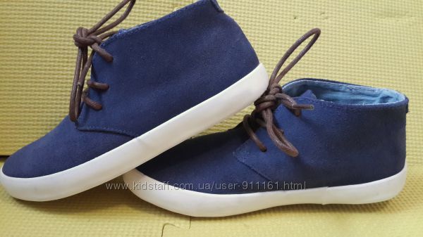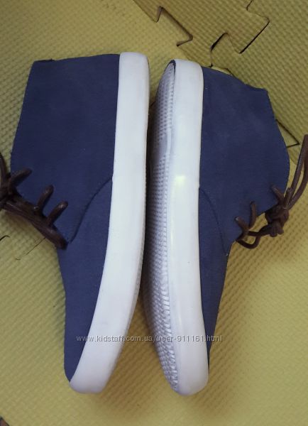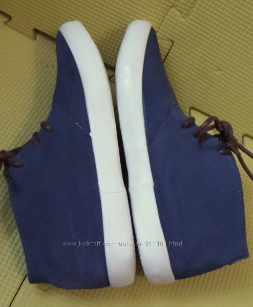 Стильні, м"які, зручні Benetton на шнурки з 100% замшевої шкіри. Резинова підошва. Підкладка з 100% бавовни. Розмір 32. Устілка 21,5 см. Підійдуть на ногу 20-20,5 см.Колір синій, шнурки коричневі.