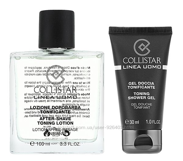 COLLISTAR Тонизирующий гель для душа, 250 мл+ пена для бритья для чувствительной кожи 75 мл. В состав набора входит: