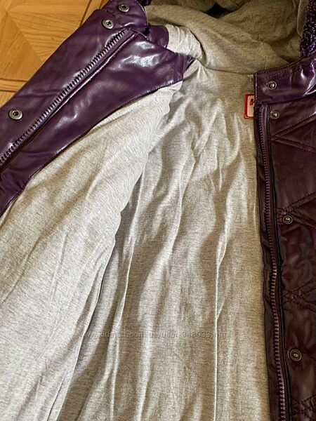 Стильная курточка Kangaroos, 8-9 лет. Кож.зам. Нежная на ощупь подкладка. Дополнительные кнопки-пуговки. Одевалась один раз. Очень тёплая. Капюшон не отстёгивается. Новые шапочка и шарф в подарок. . Отправляю НП.