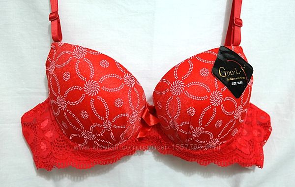 Бюстгальтер женский красный дизайн белый поролоновый без пуш-ап 70В 75В