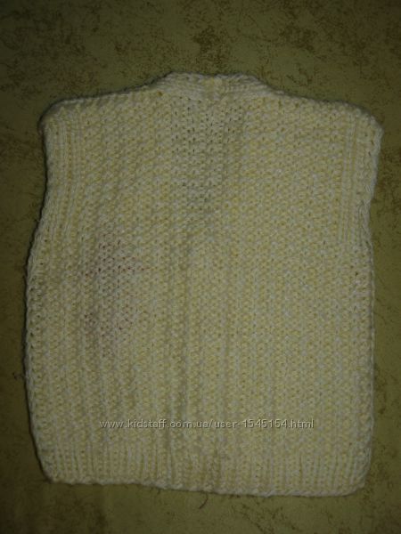 Теплая вязаная жилетка, шерстяная. Согреет вашего малыша в холодную погоду.Длина 31 см, ширина 26 см.Звоните, пишите, спрашивайте.