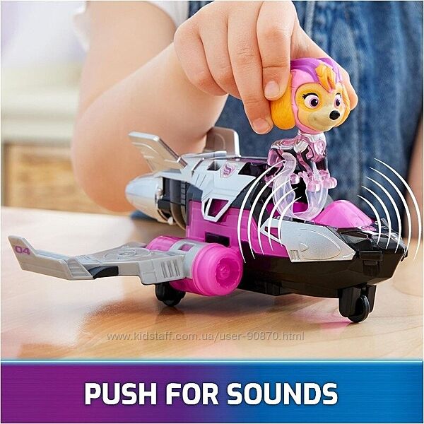 СВІТЛОВІ ТА ЗВУКОВІ ЕФЕКТИ: увімкніть синхронізоване світло та звуки на винищувачі Скай, посадивши її в кабіну її дивовижного іграшкового літака, перш ніж вирушити на місію!