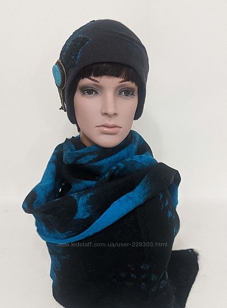Размеры: шляпка - 55 - 56 шарф - 196 х 40 брошь - 11 х 6