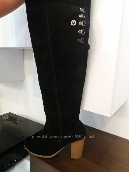 Новые высокие замшевые сапоги.Верхний материал - натуральный замш.