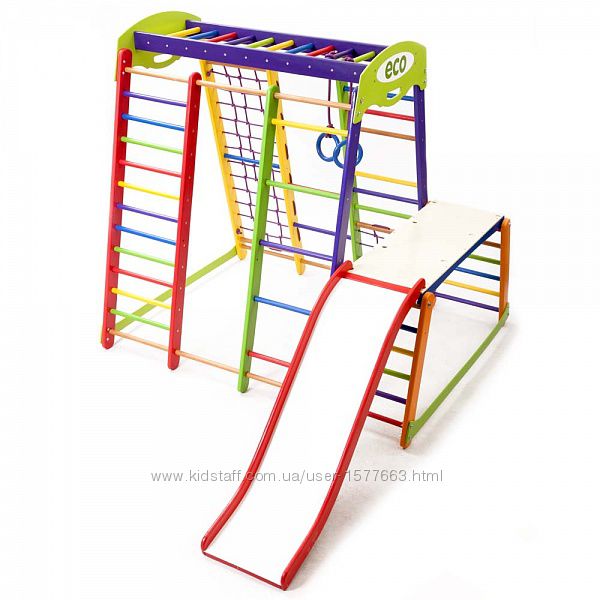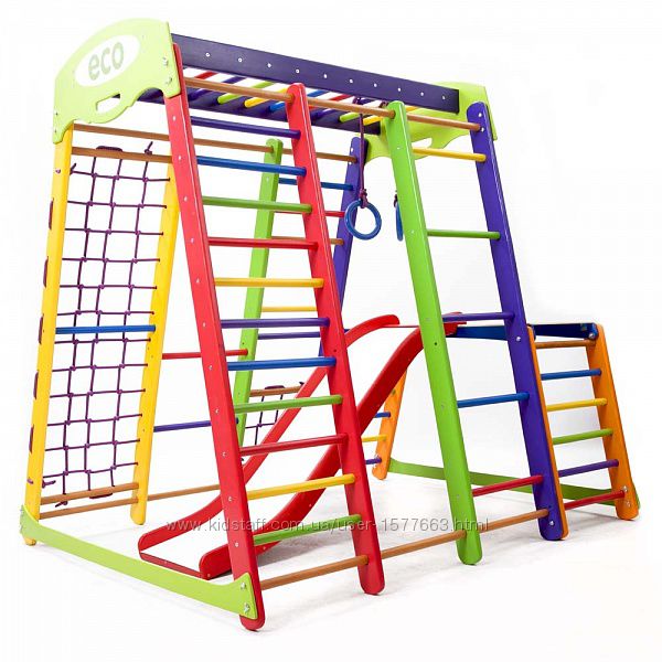 Спортивный комплекс для дома Акварелька Plus 1-1Улучшенный развивающий детский комплекс с умной горкой для малышей.Лучше няни увлекает ребёнка в игру.