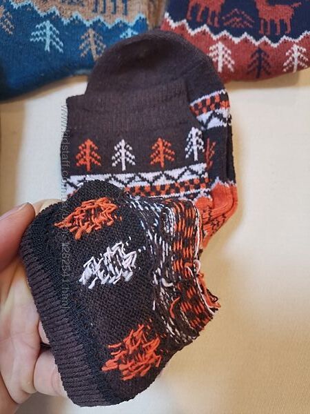 Носочки тёплые с добавлением шерсти 15% - "Новогодние" и "Олени"Яркий рисунок, идеально подойдут для подарка!