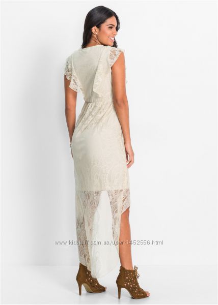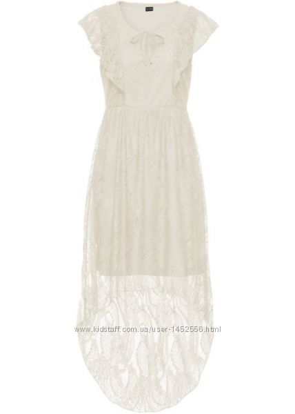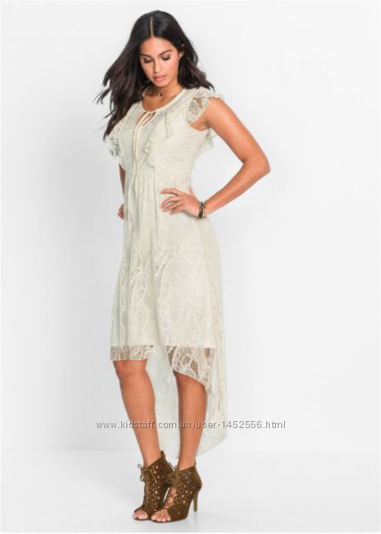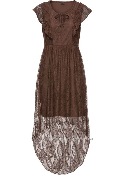 Кружевное платье коричневое или бежевое.Кружевное платье с воланами и шнуровкой. Удлиненная спинка. На подкладке. Длина по спинке ок. 140 см (разм. 36/38).