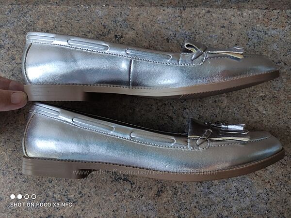 Подробное описание: Серебристые туфли лоферы 24, 5 см