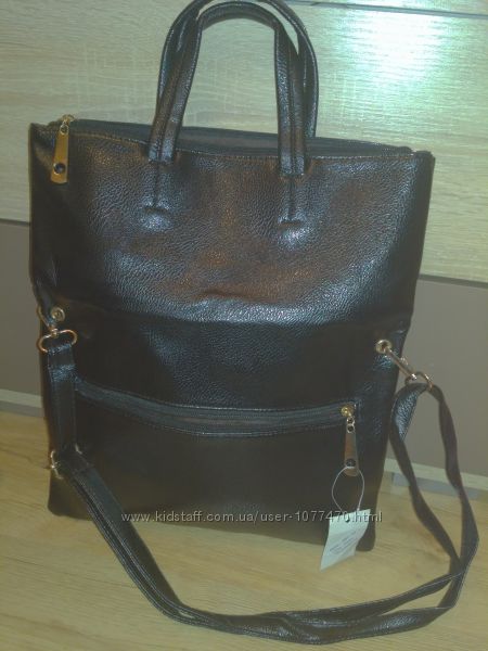 Очень удобная, оригинальная и неповторимая. внутри есть карман, снаружи есть карман, плотная качественная подкладка, длинная ручка, которая регулируется, есть короткие ручки, чтоб в руке носить, качественная искусственная кожа, черного цвета. Трансформер 2 в 1 маленький клатч превращается в вместительную сумочку в городском стиле. Новая. В наличии 2 шт. Укрпочтой бесплатно до 20 числа