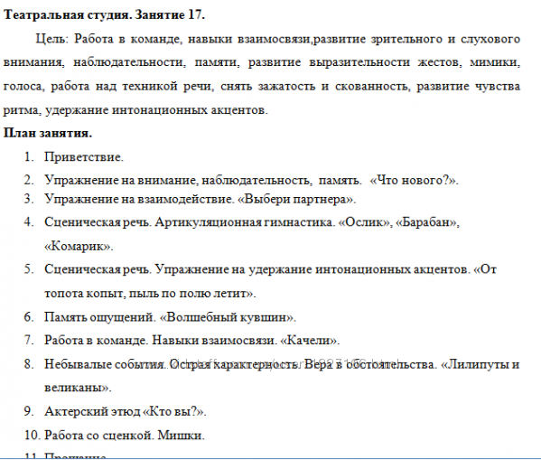 Несомненные плюсы наших конспектов занятий по театральной студии:
