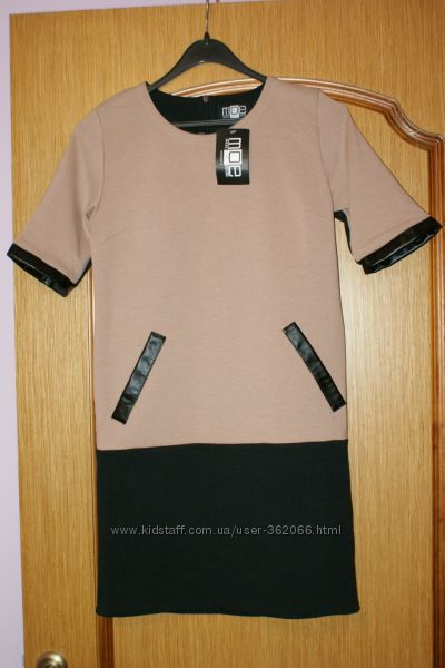 Стильное новое платье размер S. Смотрится стильно.строго и красиво. Красивый пастельный тон в сочетании со вставками из эко-кожы. Цвет Чёрный, БежевыйСостав 65 хлопок,35 полиэстер