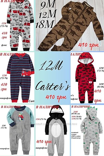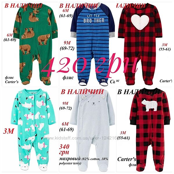 Скидка! Тёплые слипы Картерс в наличии - 410 - 450 грнЦена и размер указаны на фото