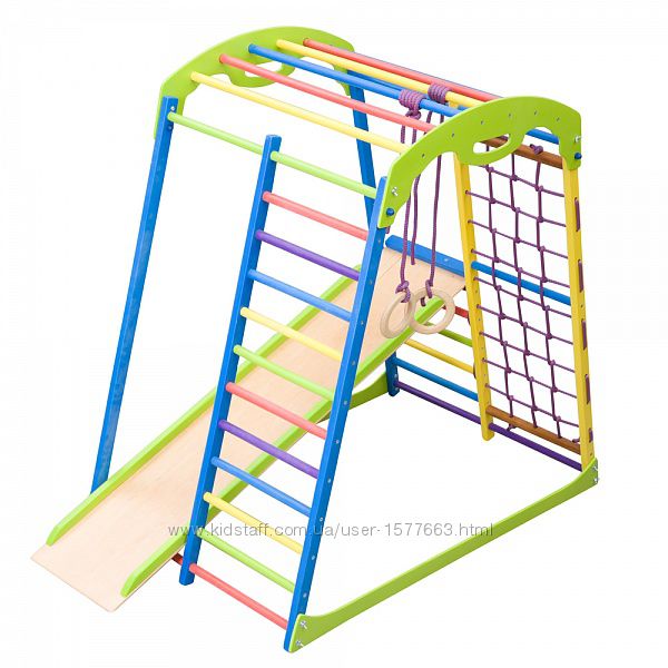 Этот яркий, красочный, многофункциональный спортивный комплекс подарит вашему ребёнку море радости и удовольствия, сделает его досуг весёлым, интересным и захватывающим. К тому же, благодаря своей комплектации, SportWood сделает вашего малыша более сильным, ловким, гибким и смелым.